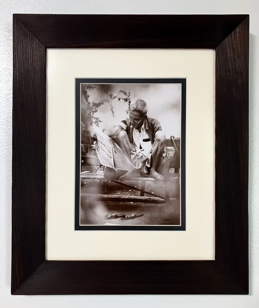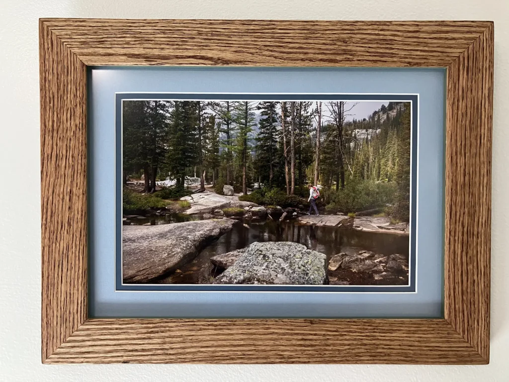 I make picture frames out of my humble shop located in Columbia Falls, Montana. I use 100% real wood (both local Montana softwoods and USA hardwoods) and thoughtfully source the other materials that go into picture frame making. The ideal picture frame should always direct one’s focus toward the subject being framed, while also complementing it with a housing that is precise, awesome, and authentic. Don’t live in the Flathead Valley? That’s fine. I ship with no handling fees and charge whatever the carrier charges.
